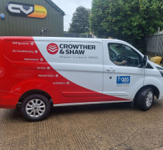 Crowther & Shaw, a long term client of CV Graphics, contacted us to update there entire fleet of vans with a new livery. In all, we completed 21 vans within one month, while continuing to supply our other customers with no interruption to production!